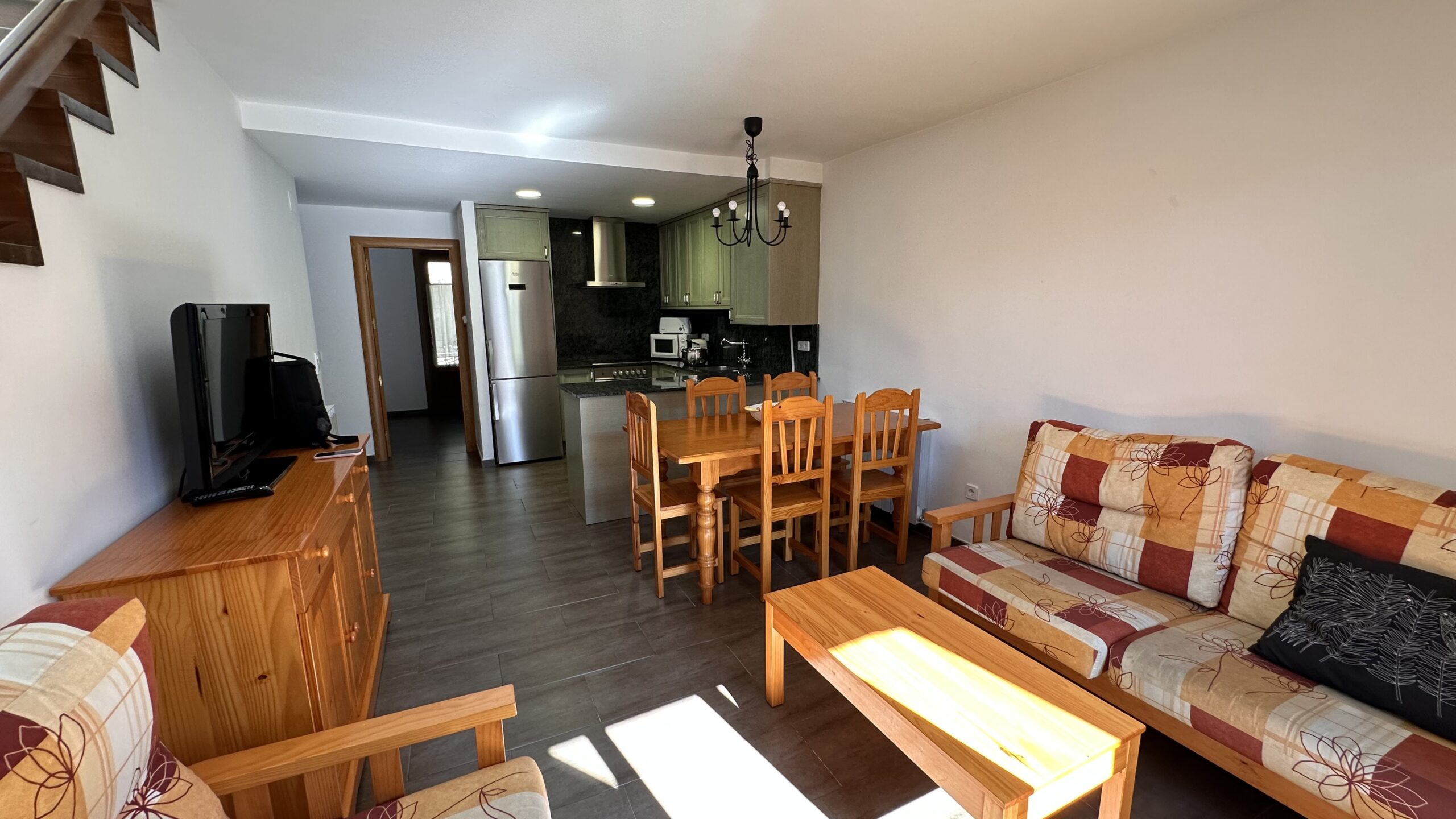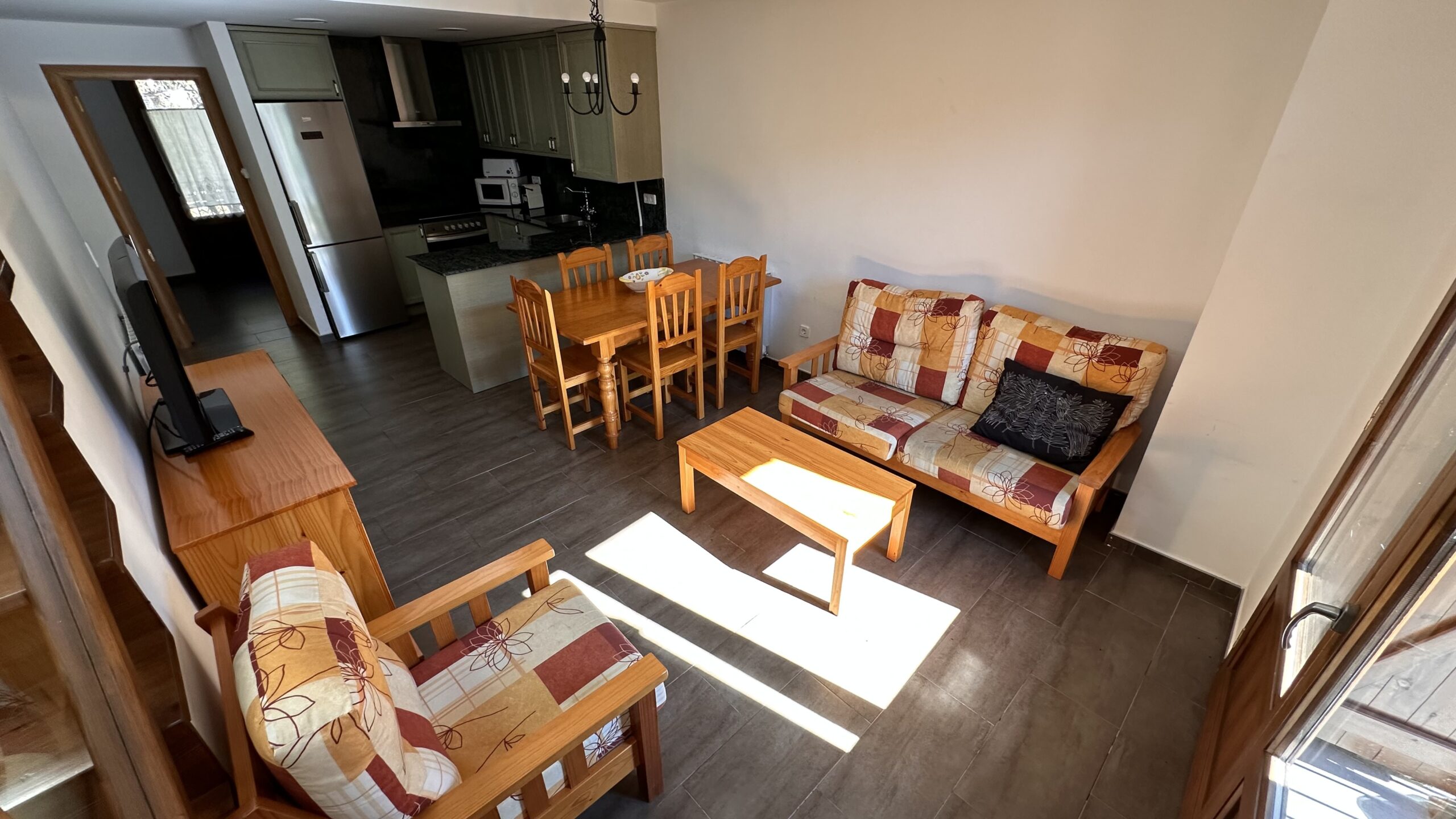 En creuar el llindar, serà rebut per una àmplia sala d'estar que promet ser el racó de descans després d'un dia explorant les belleses naturals de la regió. La llum natural banya l'interior i realça un disseny que honra la simplicitat i la funcionalitat. La sala es complementa amb un televisor i un còmode sofà, convidant a moments de relaxació i entreteniment.