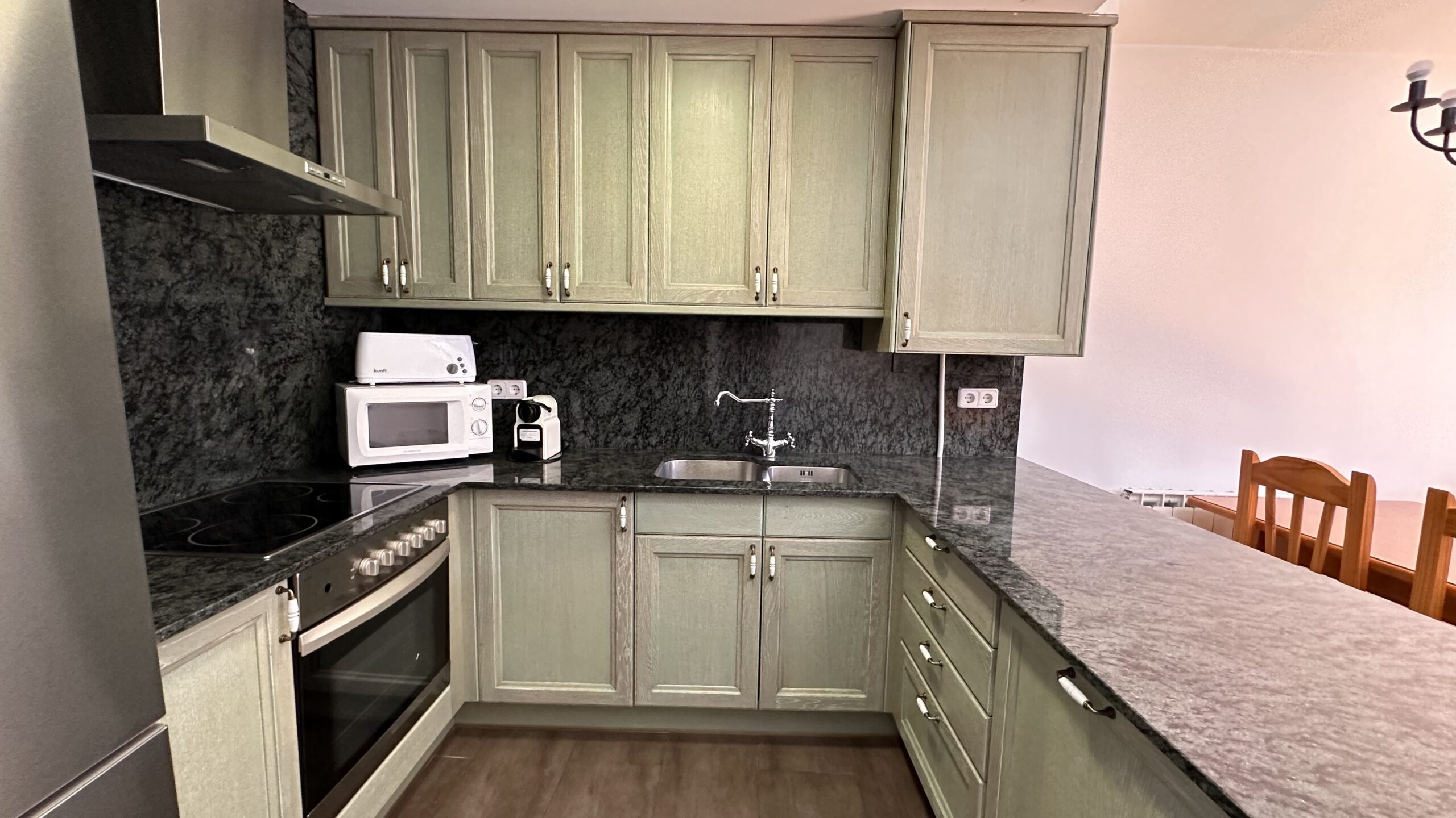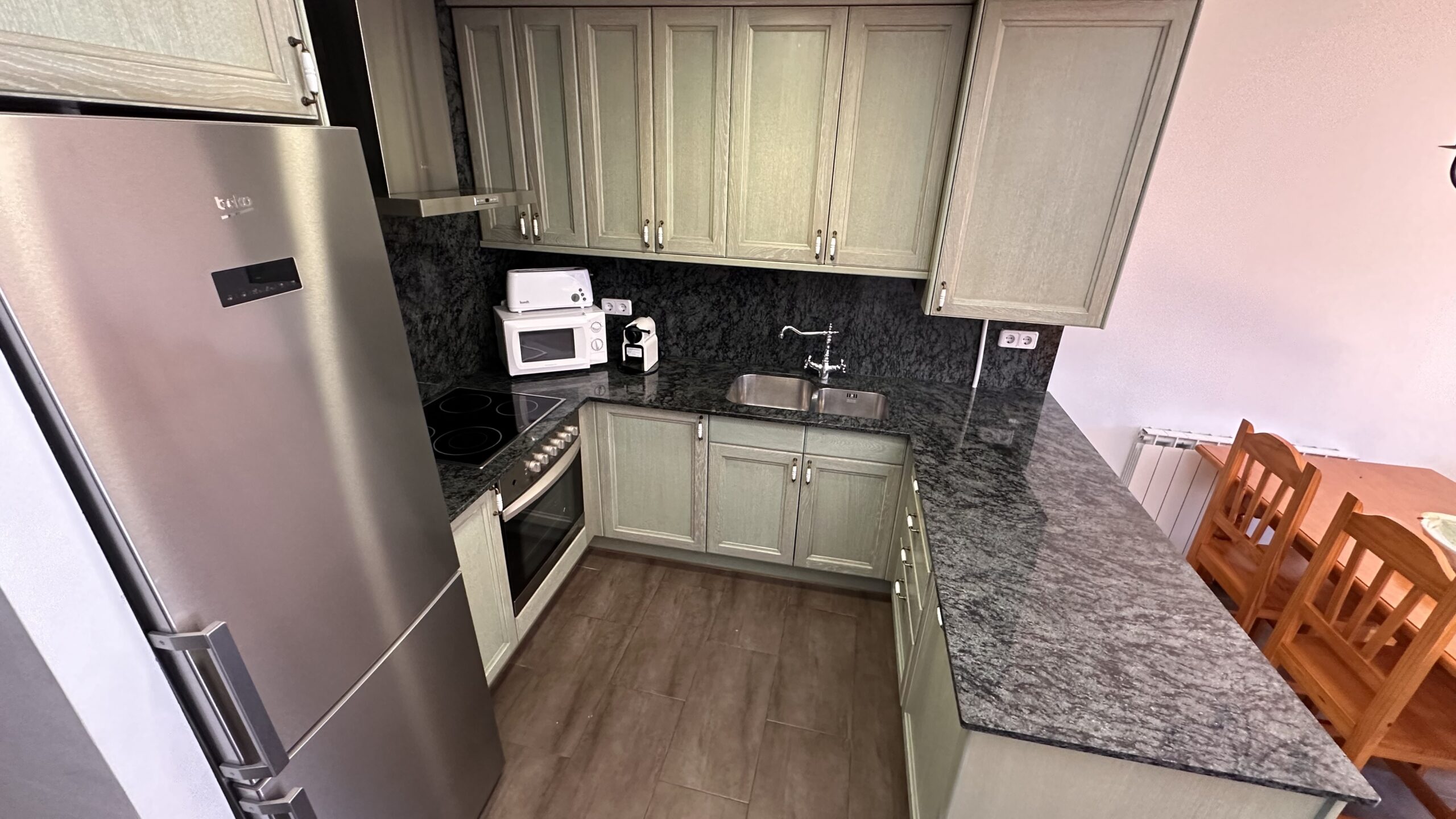 Adjacent a la sala, es desplega una cuina oberta, completament equipada amb electrodomèstics moderns, que inclouen una nevera d´acer inoxidable, un forn i una estufa integrada que esperen el toc del xef viatger. La barra d'esmorzar proporciona un espai íntim per assaborir una copa de vi local o un cafè matutí, mentre que l'àrea de menjador amb taula de fusta és el lloc perfecte per a banquets familiars o un sopar romàntic.
